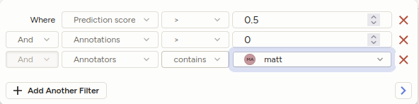 2. Filter the Data Manager page to show only the data you want to delete. For example, specific annotations, or tasks annotated by a specific annotator.